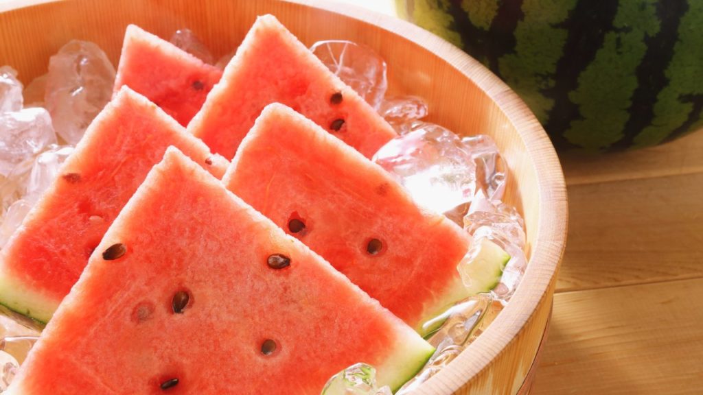 - 冷蔵庫で冷やしたスイカ